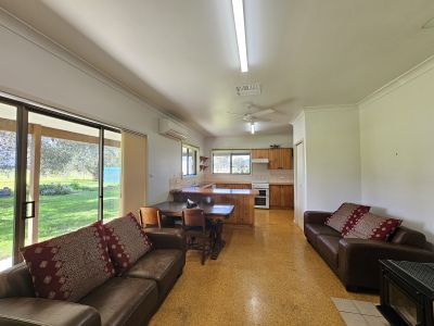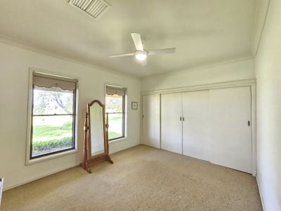 Situated just five minutes from the main street, this 78-acre (31.6-hectare) property is very conveniently located. The land is mostly top-quality alluvial river flats, with Sandy Creek running through the property. There are two fully equipped wells with a 19-megalitre irrigation license, feeding the underground mains and water to the header tank, which supplies water for the lawns, gardens, and cattle troughs. The property is fenced into four paddocks, and there is a set of cattle yards with easy access and a stock dam. The home was built for the vendors and has been lovingly maintained over the years. There are three big bedrooms, with the option to convert the former dining room into a fourth bedroom; two of the bedrooms have built-in robes and ceiling fans. The main bathroom features a three-way design, and there is a second bathroom in the laundry. There are two living areas: a formal lounge and a family room, which has a combustion fire coming off the kitchen. The timber kitchen is in excellent condition and has plenty of cupboards, a large pantry, a dishwasher, and an electric stove. The home has ducted air-conditioning throughout and a reverse-cycle air-conditioner in the family room. There are verandahs all around the house to sit and take in the beautiful views of the farm and the mountains beyond. There is an 8m x 6m double garage with an attached carport, a 12m x 9m lockable shed, and a 4-bay machinery shed. With established shade trees and plenty of water to keep the garden green, this property is a great spot to raise a family and enjoy a rural lifestyle on the doorstep of the town.