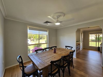 This brick & tile home sits on a large 1012sqm corner block allowing for access to the NEW shed in Burkhill Close. The home itself has a single garage with internal access and remote door, additional storage plus parking for 4 vehicles in the shed. There are 4 spacious bedrooms, all with built in robes and ceiling fans, the main with walk in robe and ensuite. An added bonus is the Office with tiled flooring. The home has Ducted R/C A/C throughout. There is a large loungeroom at the front of the home with built in bar which flows to the spacious dining room. The kitchen is modern with stainless steel appliances including a wall oven and dishwasher plus a gas cooktop. There is a family room with sliding door leading to the covered outdoor area. In the yard you will find 13m x 7m shed with attached awning, established lawn and garden beds plus a lovely outdoor space to sit and enjoy the rural views. This home is presented beautifully both inside and out and is ready for a new owner to enjoy it. Book your private inspection today!