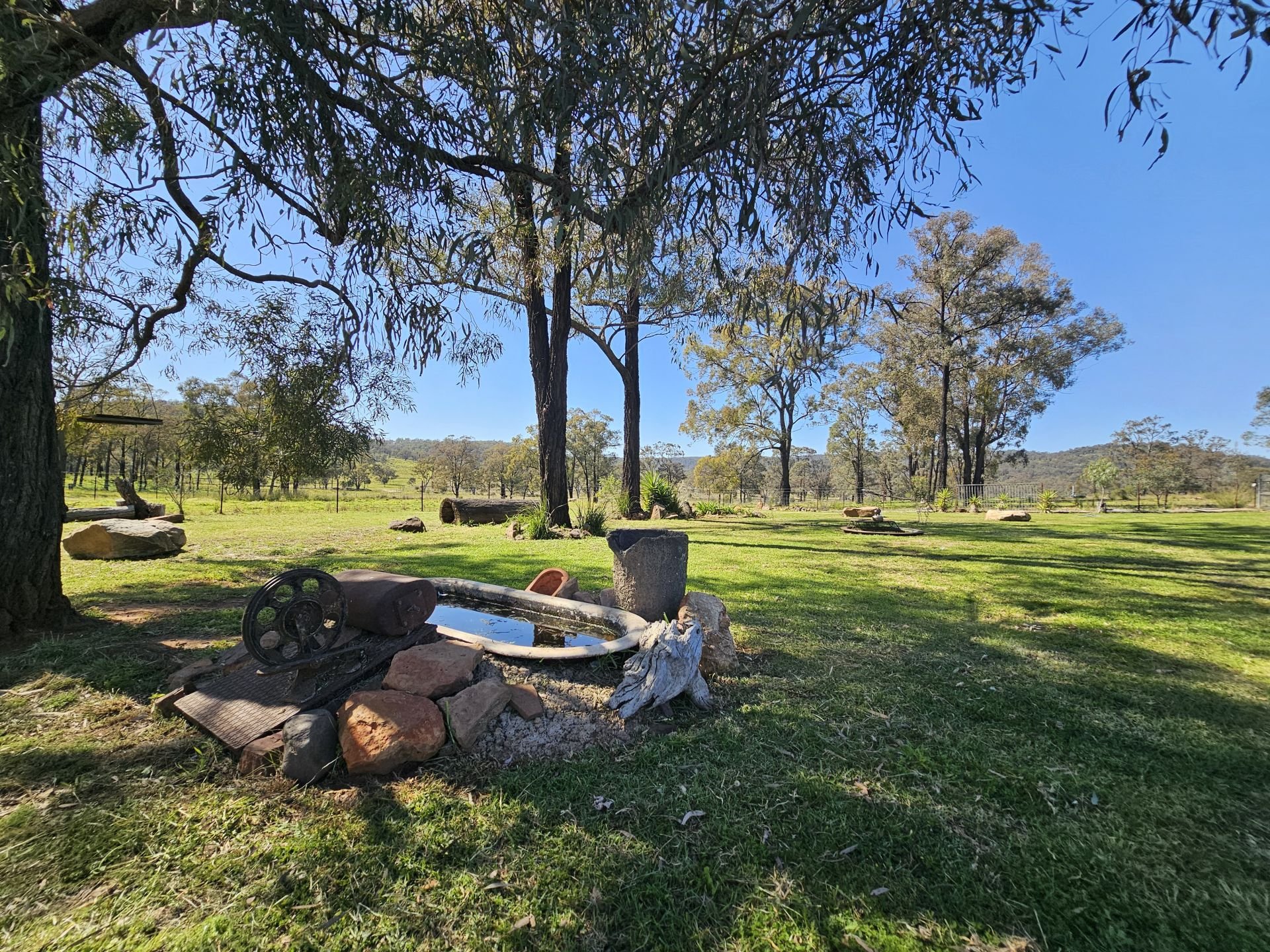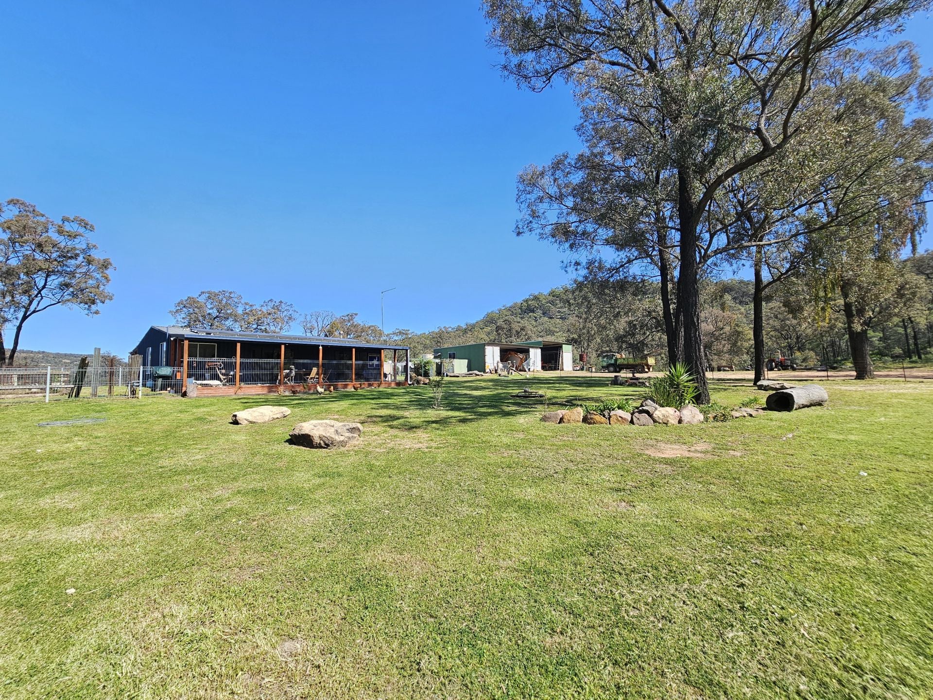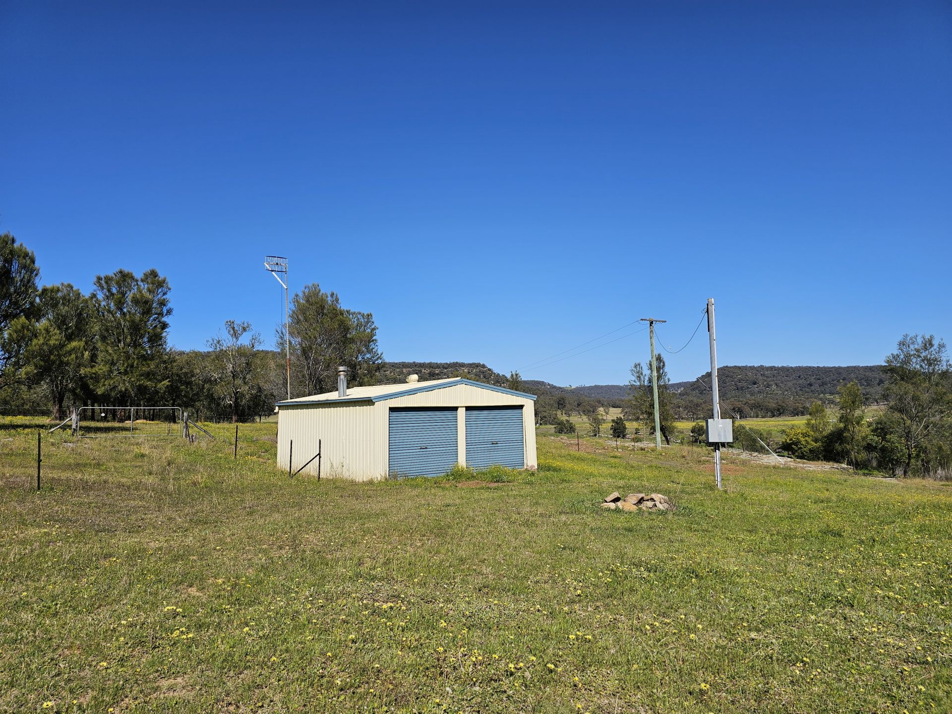 For storage, there is a 5-bay shed with container lock-up and a cool room. There is also a 2-bay carport. Water is supplied by 44,000 liters of freshwater tank storage, a fully equipped bore feeding to a header tank with runs to the outside taps and stock troughs. There are 5 dams and Merriwa River frontage. Situated next to the river is a 6m x 6m shed with power set up as a camp shed.