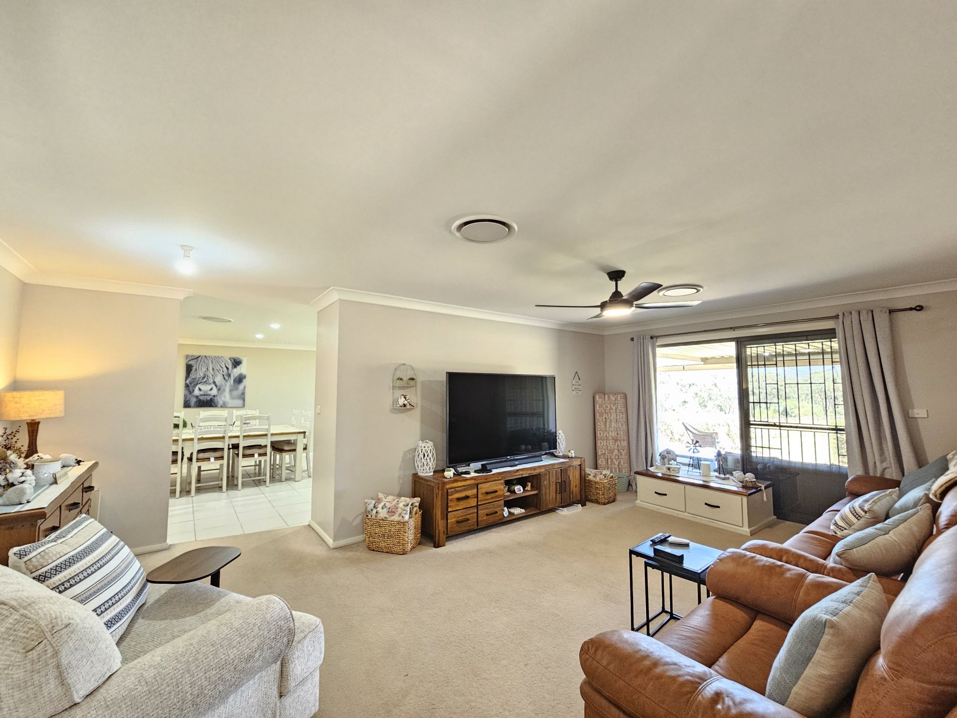 This fantastic property is set on 4.5 acres only a few minutes drive from town with lovely mountain views and no near neighbours. Featuring a brick & colorbond home with 5 full bedrooms (plus an office), all with built in robes and ceiling fans, the main with walk in robe and ensuite. The home has Zoned Ducted R/C A/C throughout. There is plenty of living space with a carpeted loungeroom, a huge tiled dining area flowing through to an additional living area with sliding doors to the Alfresco. The kitchen is a great size with plenty of bench space, dishwasher and electric cooktop. From here you overlook the established acreage and the gorgeous views beyond. For parking there is a double garage with remote door and internal access plus a carport big enough for 4 cars. In addition there is a 14m x 8m shed with mezzanine storage and an awning out the front for more vehicles or Caravan. The shed has 3 phase power. For water storage there is town water plus tanks and there is a dam on the property. The acreage is fully fenced with a separate sheep paddock at the rear. Small acreages this close to town that allow for a Horse or two are hard to find. Book your inspection today!