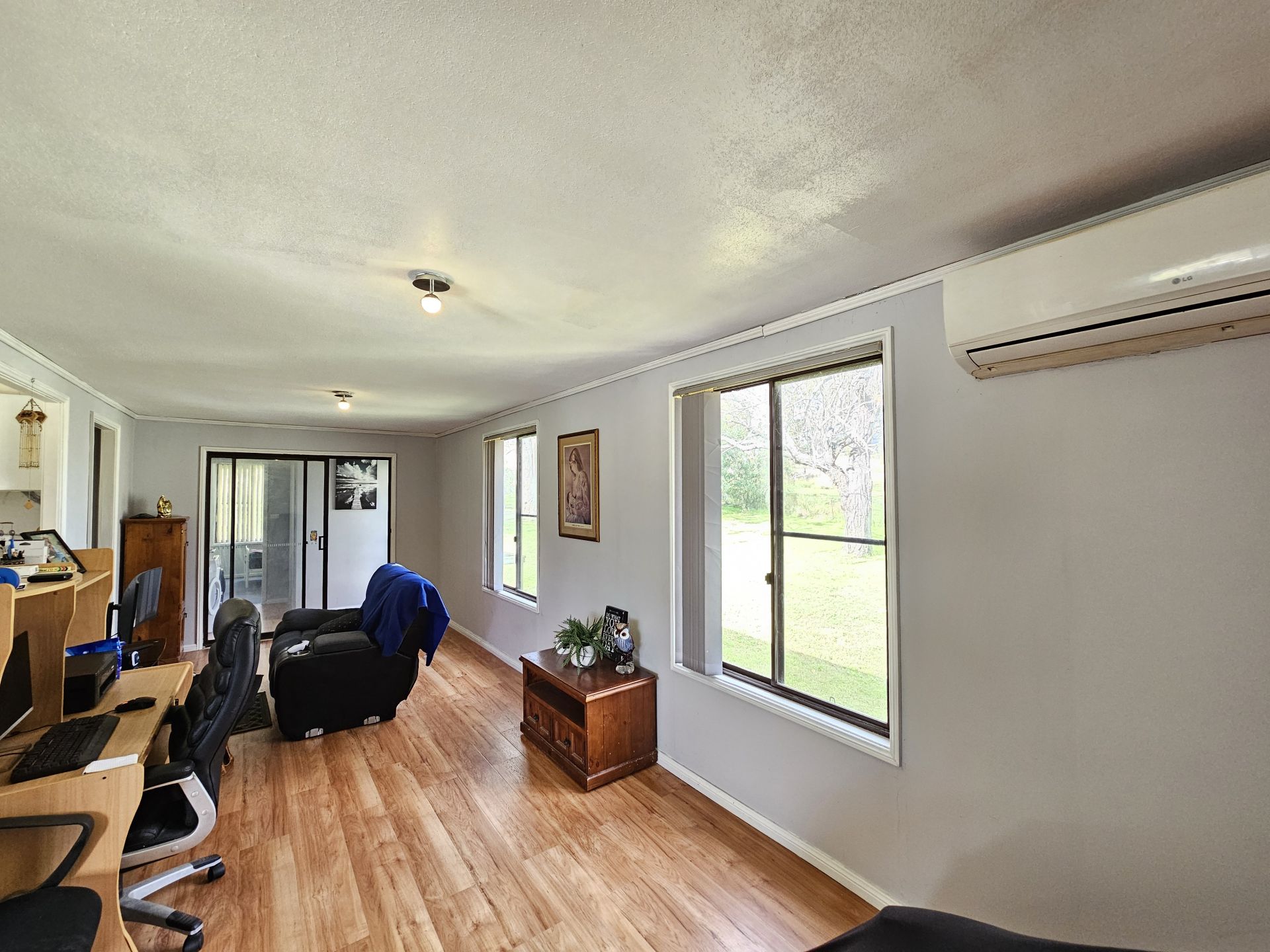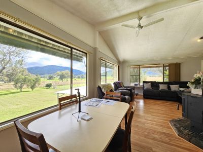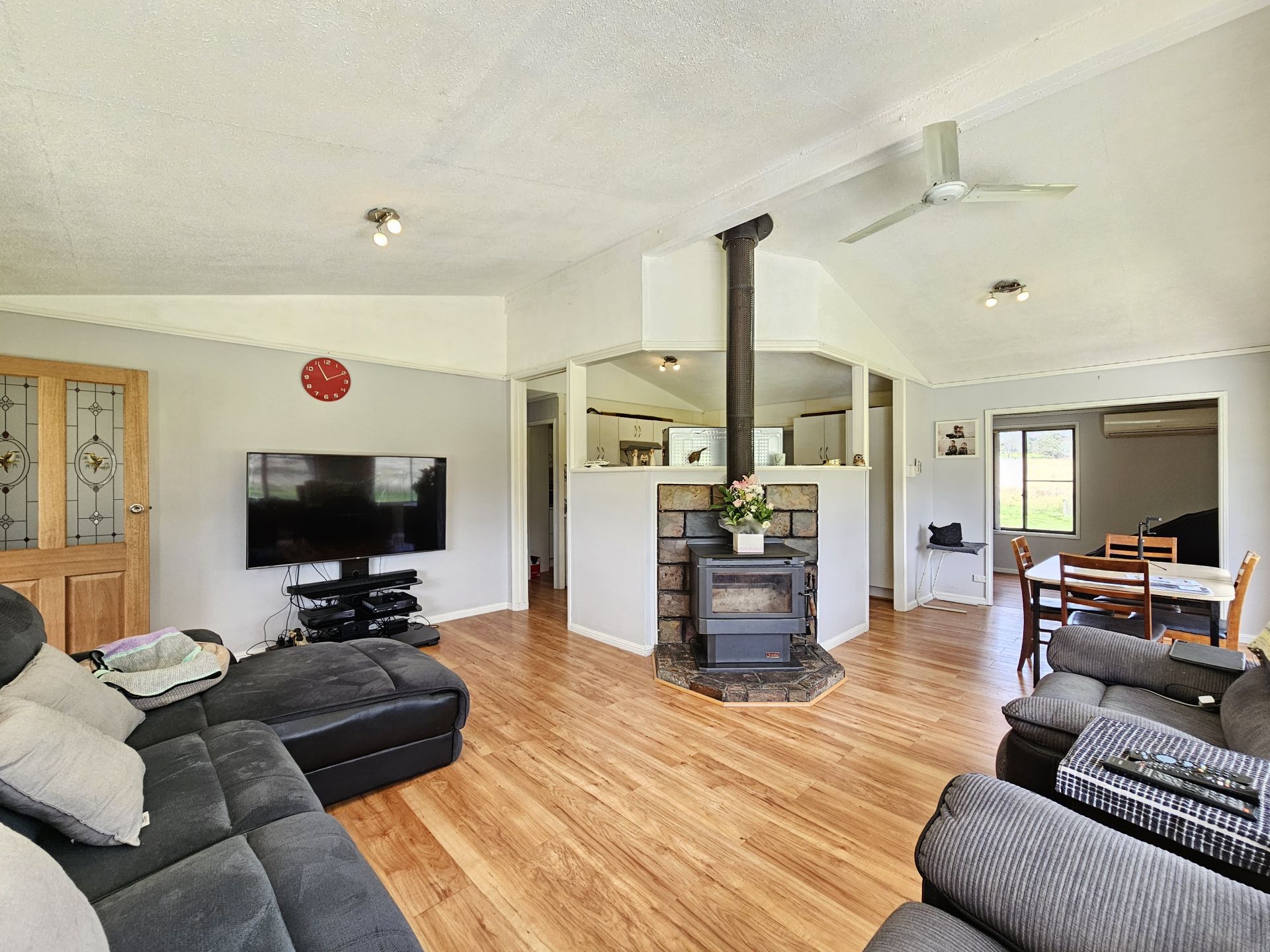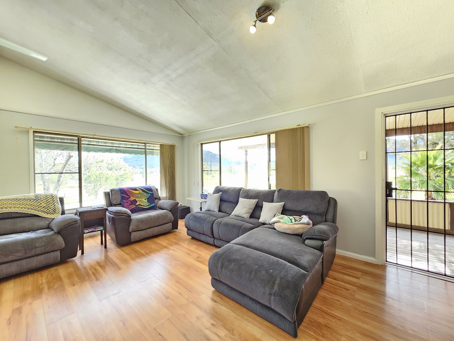 Situated on a large 1.5acre block & surrounded by farmland this property offers you a peaceful rural lifestyle without the hassle of looking after a big acreage. The land is flat & would accommodate a horse or two. There is access to the Creek with a pipeline in place and a great swimming hole for the kids to play. The home has 4 good size bedrooms, all with built in robes and one with R/C air. There are 2 living areas upstairs with a large rumpus room with R/C air & an open plan lounge/dining area featuring a combustion fire and a lovely outlook over the yard towards the mountains. The gourmet kitchen has been fully renovated & has an electric oven & cooktop, plenty of cupboard & bench space plus a walk in pantry. The bathroom is in good condition and there is a 2nd toilet off the laundry. At the front of the home is a big covered deck again overlooking the property & the mountains beyond. Downstairs is a double carport, games room & a storeroom which could be a home office or 5th bedroom. This small acreage is very well maintained & offers you the chance to secure a fantastic lifestyle for the family only 10 minutes to town. .