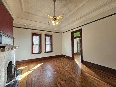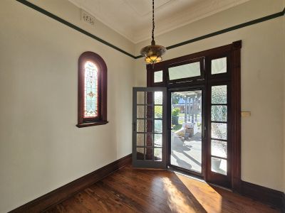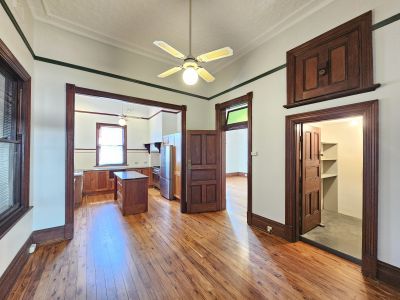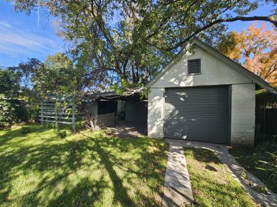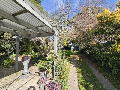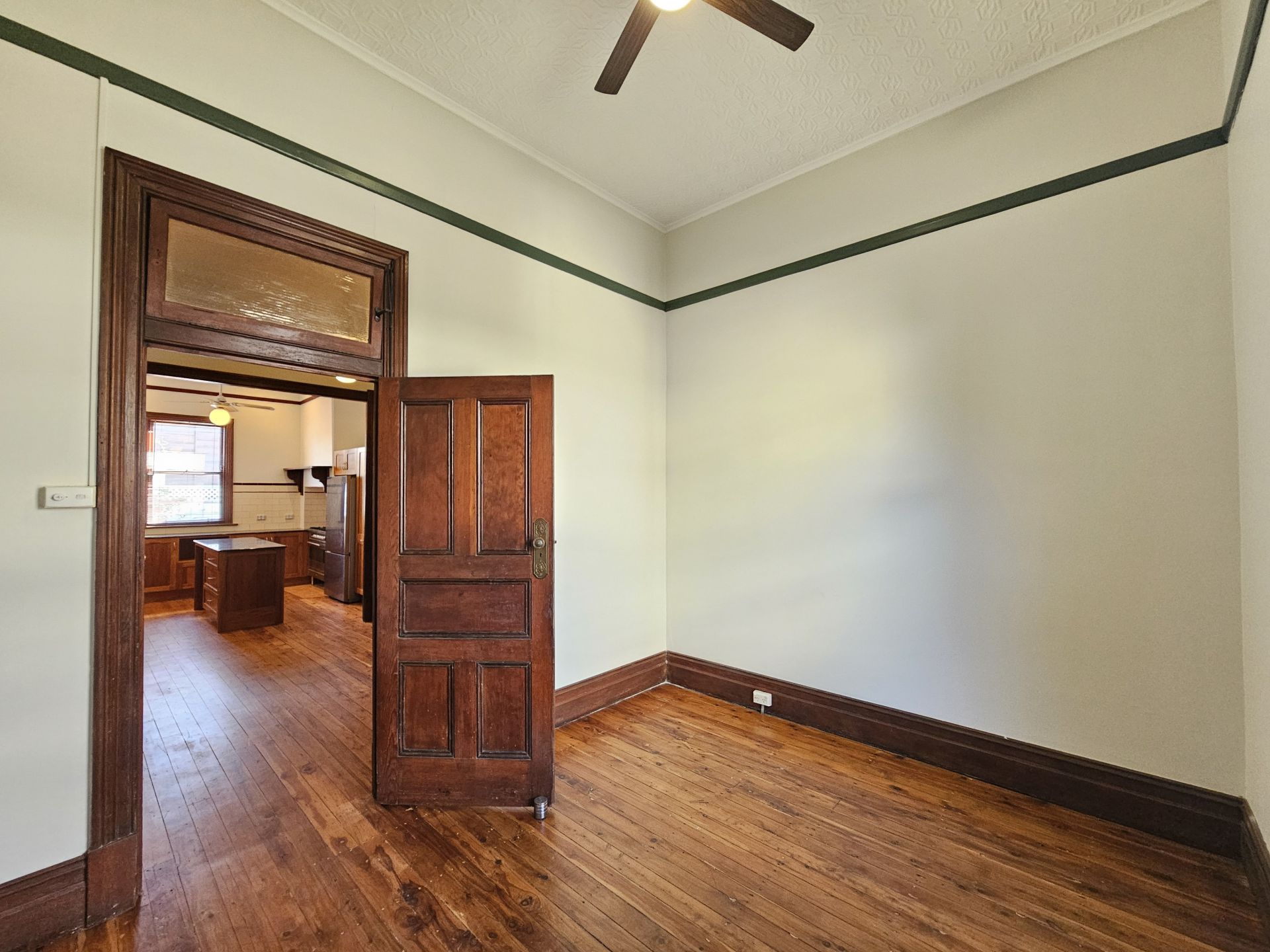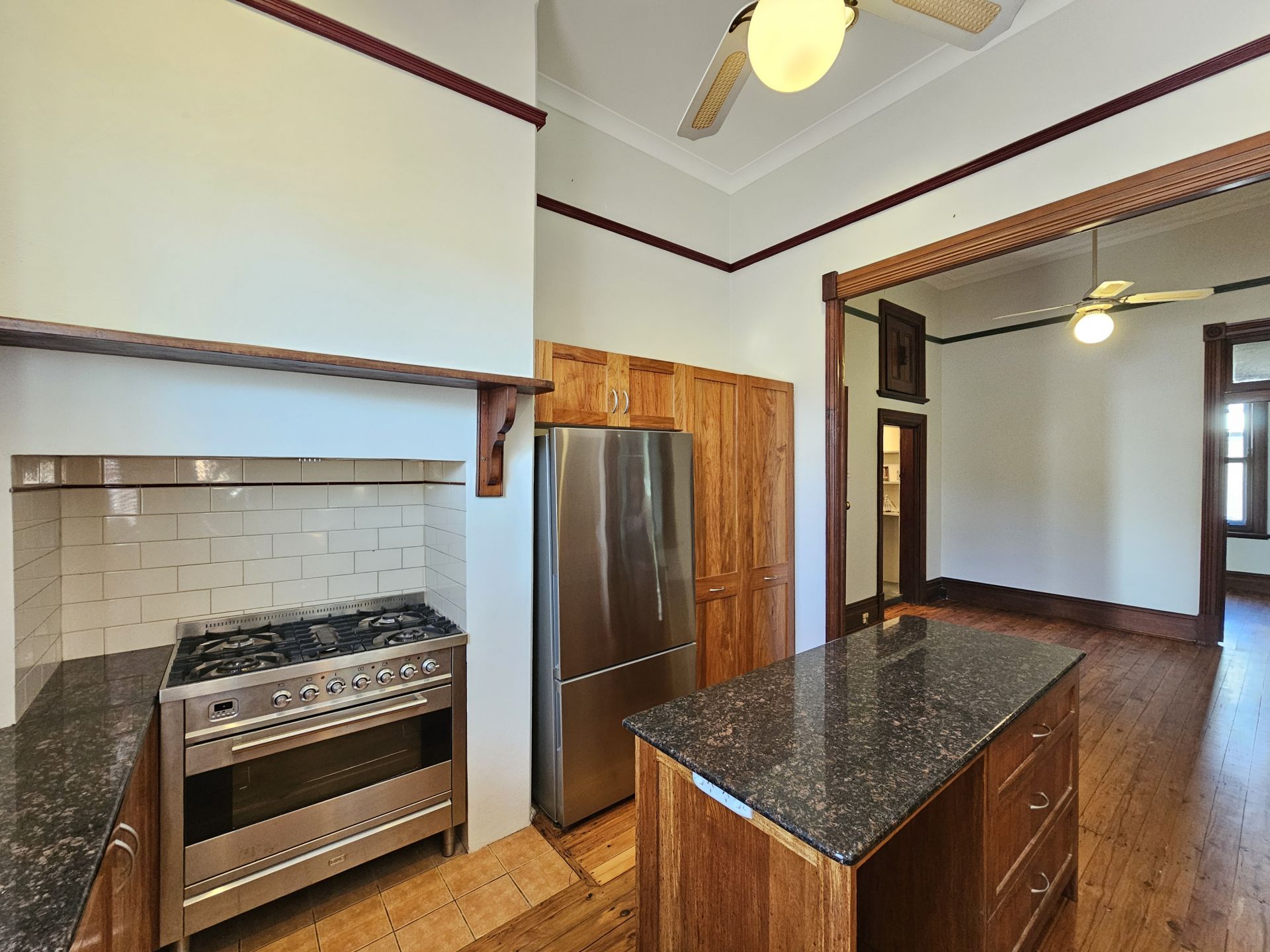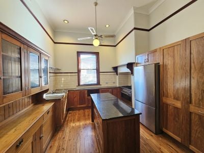 Surrounded by classic homes, this timeless residence is rich in character and perfectly positioned just moments from the Public School, TAFE and a short walik to the main street and CBD. Step inside and be captivated by the home's charm, where soaring pressed metal ceilings, original hardwood flooring and ornate fireplaces set the scene for a warm and inviting home. Timber kitchen featuring an island bench, pull-out pantry and stainless-steel oven with gas cooktop. The adjoining dining area includes a walk-in storage cupboard, with the two ceiling fans creating a comfortable space for family meals. The spacious lounge room is located at the front of the home, this elegant room boasts an original decorative fireplace, ceiling fan and a walk-in linen/storage cupboard close by for added convenience. A separate rear living space with new laminate flooring, pitched roof, ceiling fan, split-system air conditioning and serene views of the backyard through classic sash windows. The main bathroom features a corner spa bath, while the internal laundry includes an additional 2nd bathroom. Two bedrooms offer built-in robes, while the master bedroom enjoys direct access to a small studio with plumbing and external access-perfect for a creative space, home office or potential ensuite conversion. Previously set up with a home business attached to residence. This room can also be used as the 4th bedroom. Level block with established gardens, large covered front porch for entertaining and detached single garage with lean to at the rear of the block. This charming home seamlessly blends vintage character with modern comfort, making it an ideal choice for those seeking a unique and welcoming residence in a sought-after location.