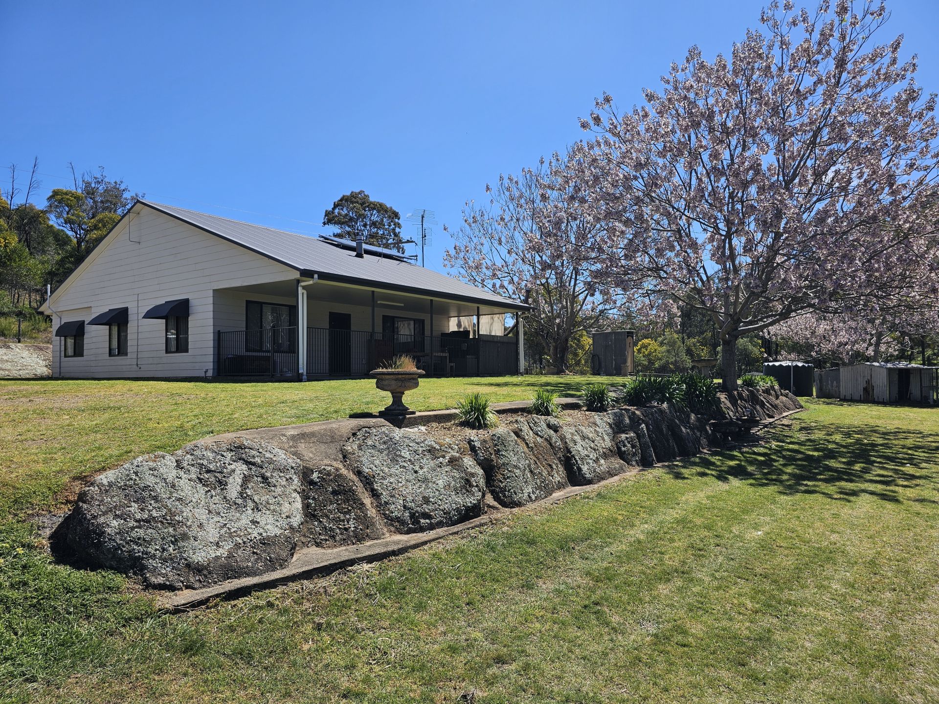 Located in the beautiful Upper Hunter, just three hours from Sydney, two hours from Newcastle, and only one and a half hours from the Hunter Valley Wine Region, this charming small acreage offers peace, privacy, and a picturesque bush outlook. Set on a generous 5,037sqm block (approximately 1¼ acres) with no nearby neighbours, the property is perfect for those seeking a quiet rural lifestyle without sacrificing comfort. The home features three good-sized bedrooms, all with ceiling fans. Two of the bedrooms include built-in robes, while the master enjoys the added convenience of a private ensuite. There are two spacious living areas: a cosy main lounge complete with a combustion fireplace, and a large tiled family room (currently set up as the dining room) at the rear of the home - ideal for entertaining or relaxing with the family. The property also includes ducted air conditioning and a solar power system, providing year-round comfort and energy efficiency. At the front of the home, a covered verandah overlooks the yard, offering the perfect place to unwind and take in the peaceful surroundings. Additional features include an outside toilet, chook house, 6m x 6m "man cave" with reverse-cycle air conditioning and a three-quarter size snooker table, providing a fantastic retreat or games room. Storage is no issue, 2 x box sheds with lift doors, a large two-bay shed (with car hoist), an attached two-bay carport, and attic storage in the roof accessible via a pull-down ladder. Water is supplied via 122,000 litres of tank storage, ensuring a reliable and self-sufficient supply. For families, the school bus conveniently stops at the corner of the property. Immaculately presented and set in a lovely private location, this outstanding property is ready for your inspection.