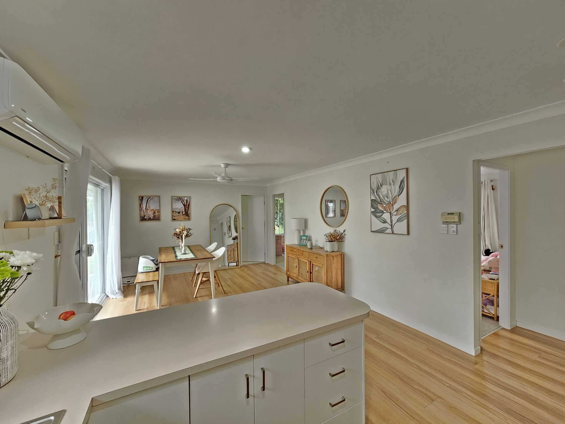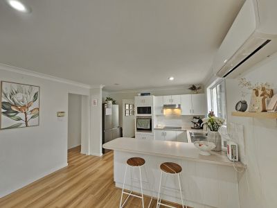 This quality brick & tile home sits in a lovely tree lined Street close to Roger Street Primary, Karoola Park and the Mainstreet. Featuring 4 bedrooms, all with built in robes and ceiling fans, the main with ensuite and split system AC. The home has plantation shutters throughout and quality flooring. There is a large open plan living area with ceiling fan and split system A/C at the front of the home with additional living combined with the kitchen. The kitchen is in good condition with updated appliances, breakfast bar and split system A/C. Both bathrooms are well presented plus there is a large internal Laundry with plenty of room for storage. Off the kitchen/family room is a paved covered entertainment area which flows to the flat fully fenced yard. In the yard you will find a large garden shed, established privacy trees and a lovely turfed backyard to enjoy. There is a single garage with drivethru access and remote door. This home is beautifully presented with nothing to do but move in and enjoy. Book your private inspection today!