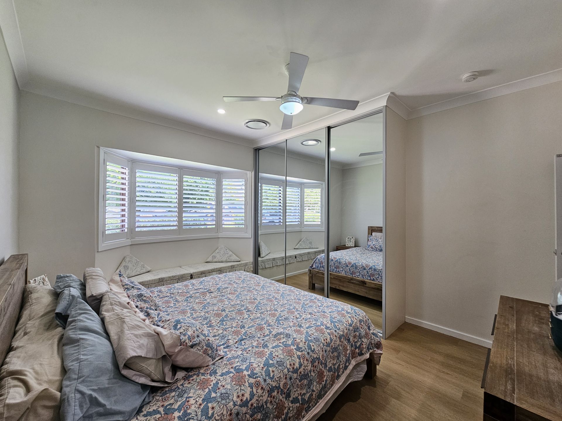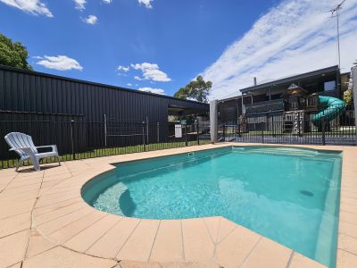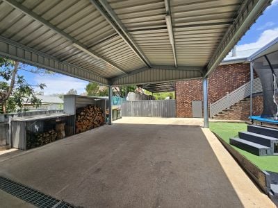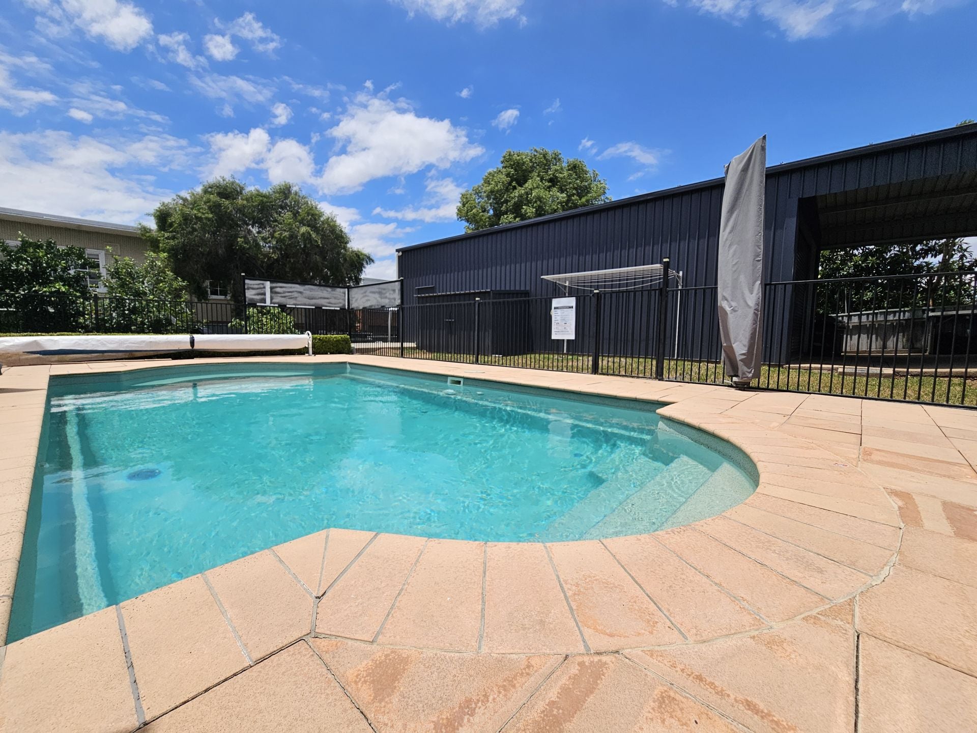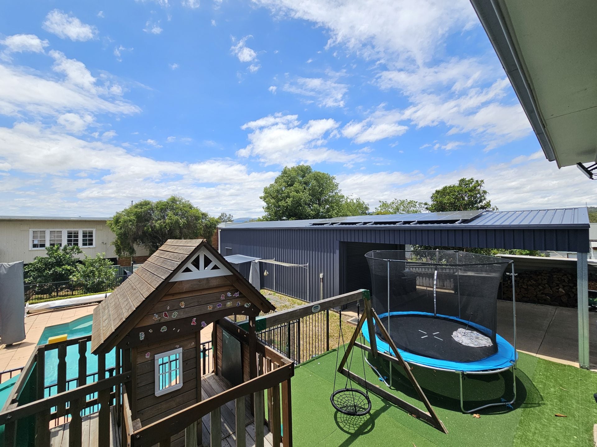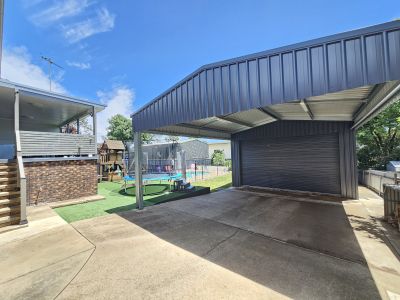 Outside is a covered entertainment area overlooking the yard with inground saltwater pool (new sand filter), a built-in kids' play area, two double carports, and a fully insulated and lined (as per photo online) 14m x 7m shed with power and toilet.
