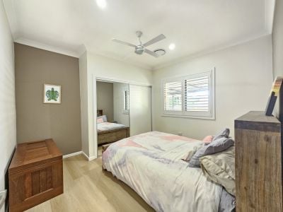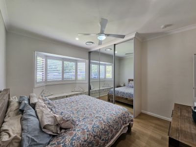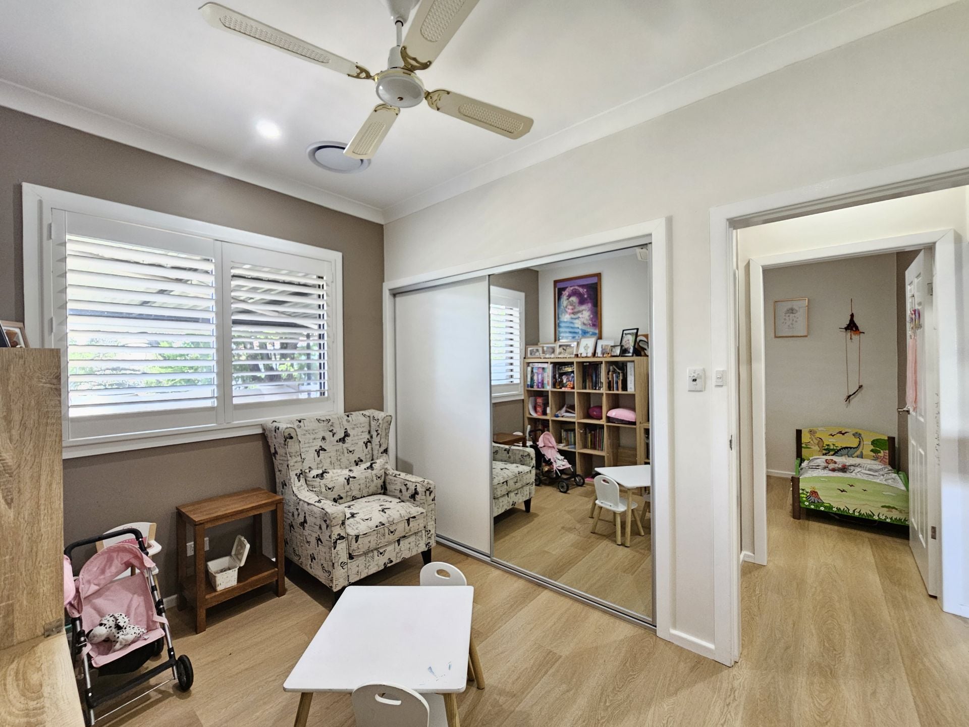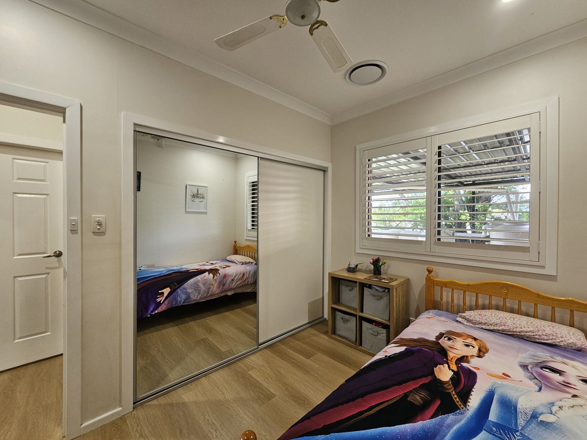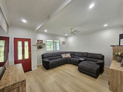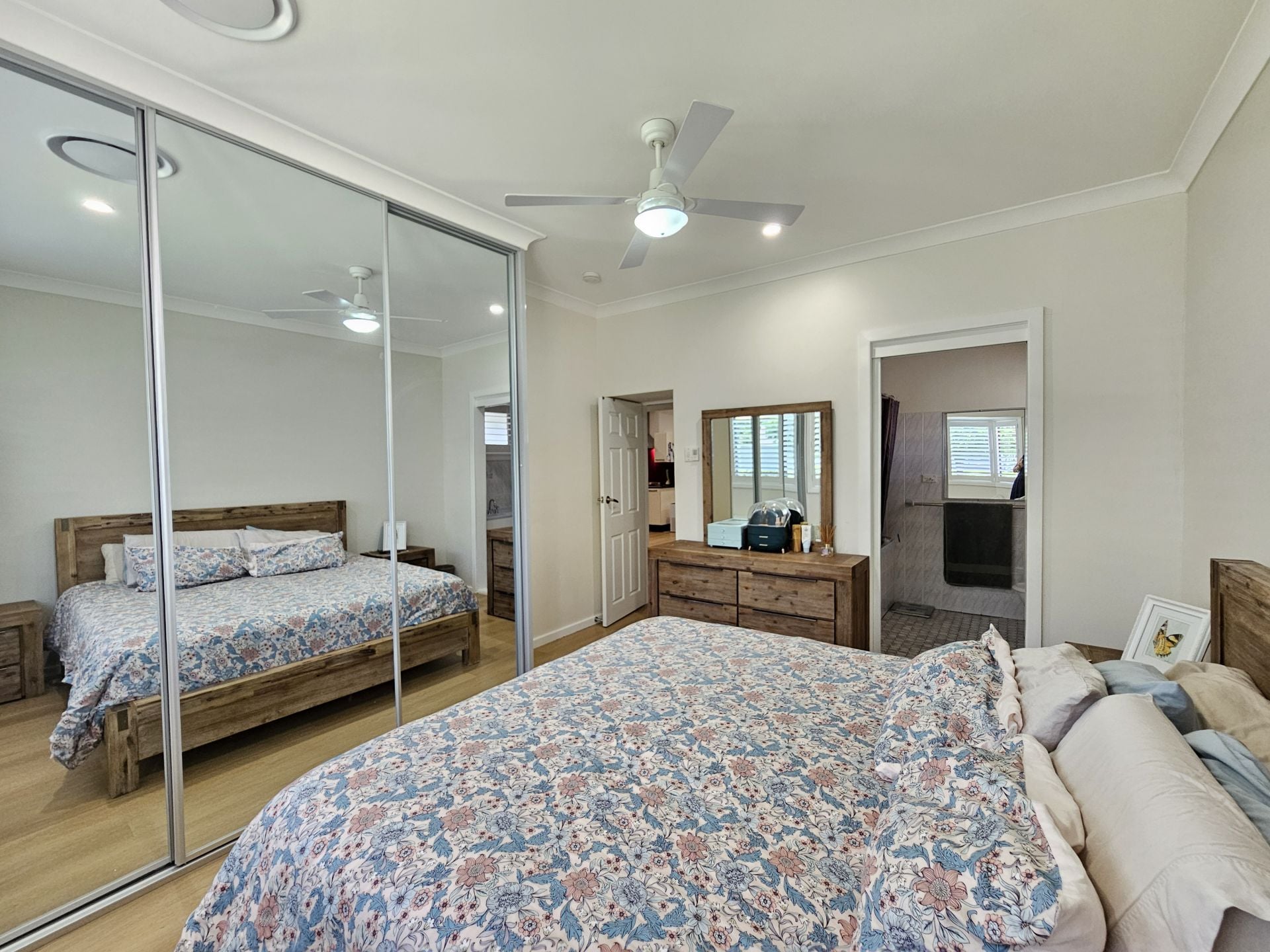 Outside is a covered entertainment area overlooking the yard with inground saltwater pool (new sand filter), a built-in kids' play area, two double carports, and a fully insulated and lined (as per photo online) 14m x 7m shed with power and toilet.