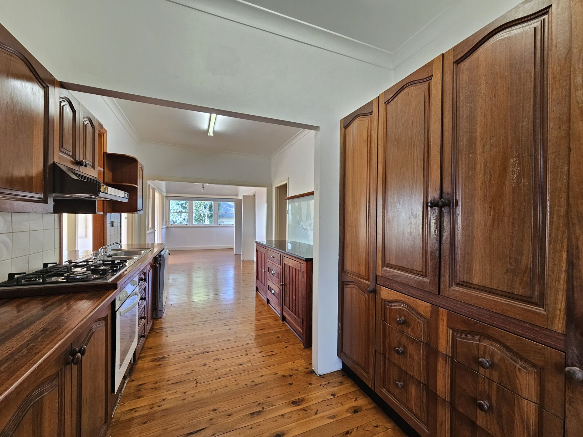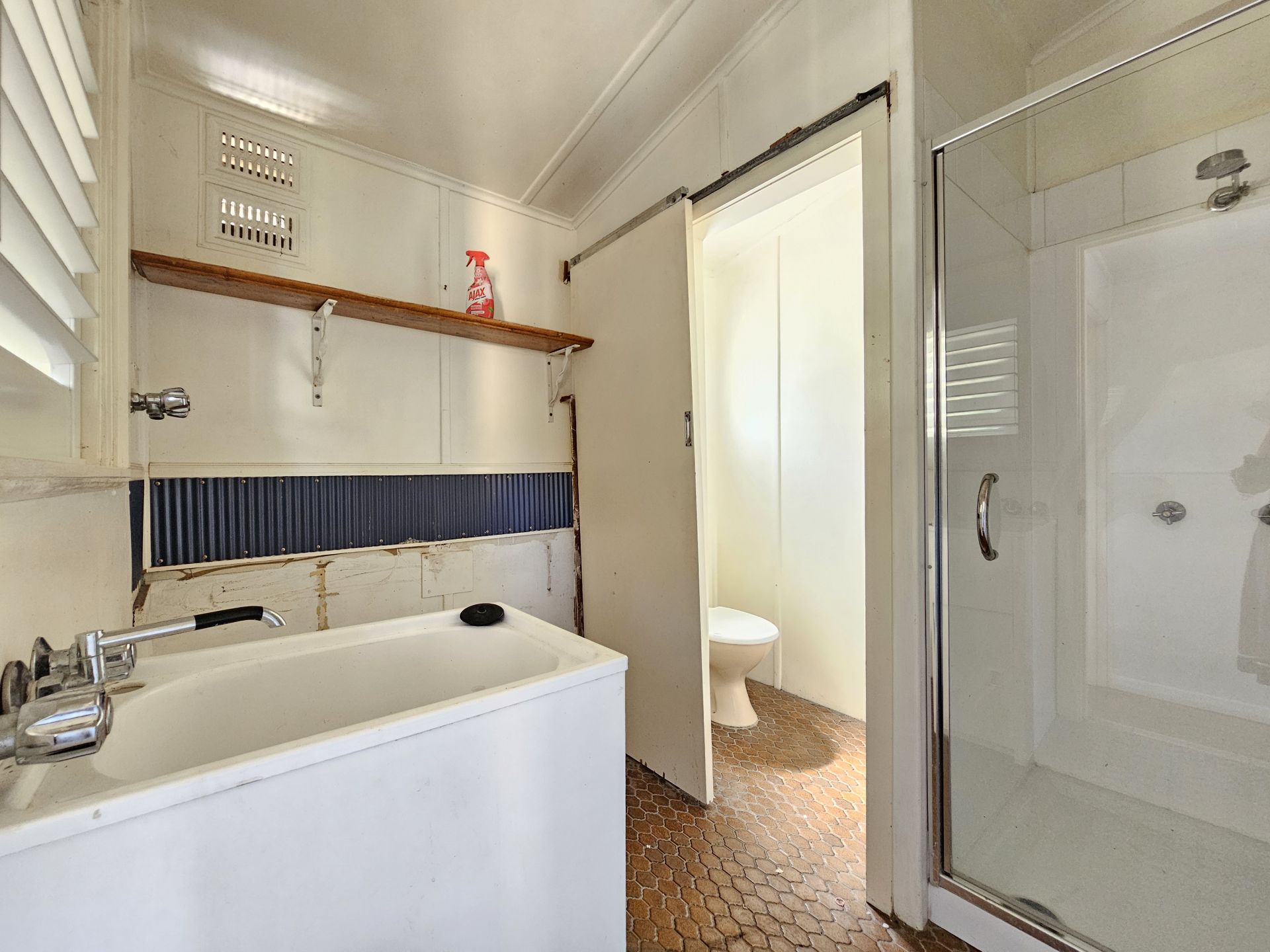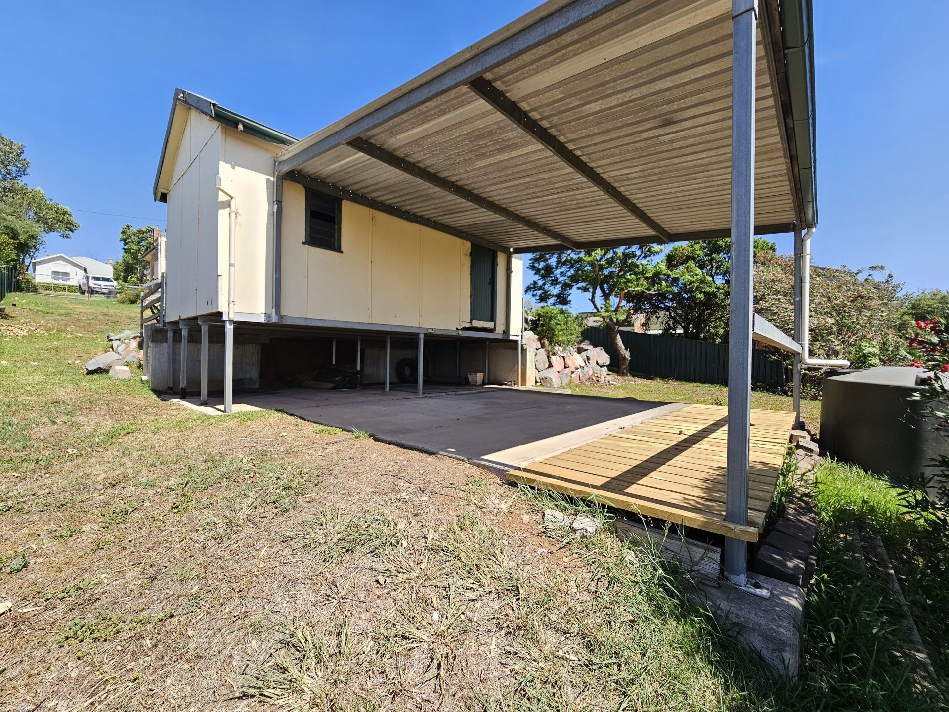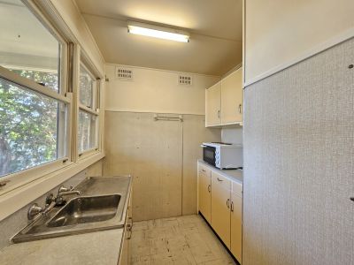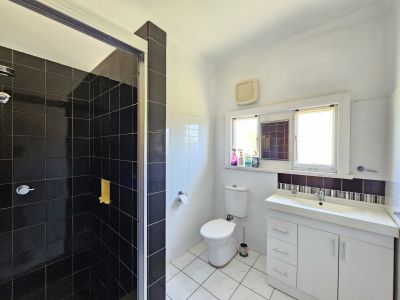 This weatherboard and tile home sits on a large 1423sqm block in the Central part of town only a short stroll to the mainstreet, Roger St Primary or Karoola Park (ripe for subdivision STCA). The upstairs section of the house has 3 bedrooms, the main with carpet and one with built in robes. The kitchen is timber and has plenty of bench space and a gas cooktop. There is an attached dining room which flows to the huge family room which takes in the town and rural views. The main bathroom presents well with shower, vanity and toilet whilst there is a 2nd bathroom upstairs in the Laundry. Downstairs you will find a self contained flat with kitchenette and bathroom. This area can be accessed internally or via a rear door. There is a single storage shed on the block with covered awning area. The block is fenced in 6ft colorbond on 3 sides. Plenty of potential for development. The possibilities are endless. Book your private inspection today.