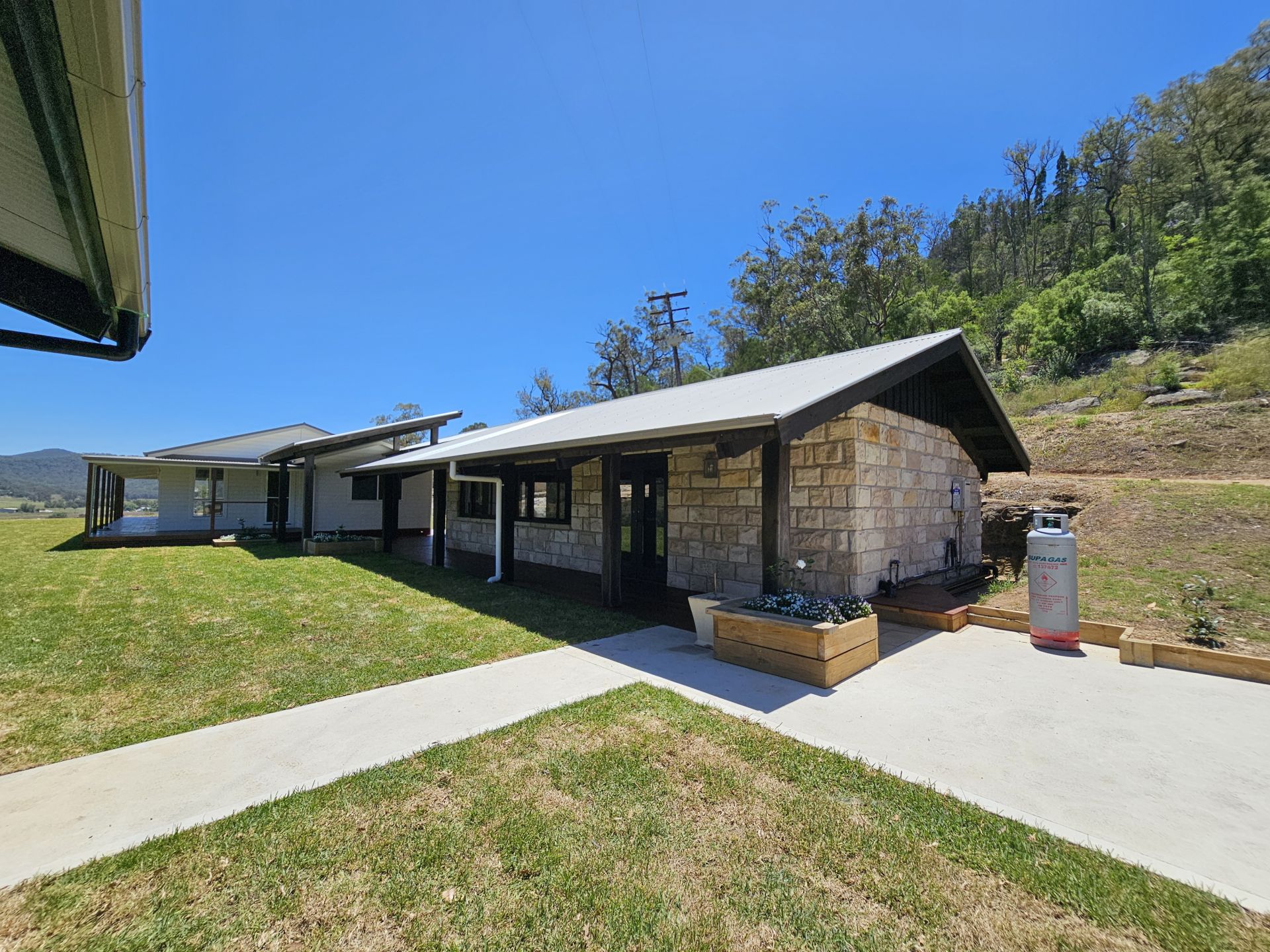 Situated on 10 hectares (25 acres), this brand-new home is only 20 minutes from Muswellbrook and 15 minutes from Denman. The sandstone portion of the home was originally the cellar door for Reynolds Winery and has now been converted into a parents' retreat with a new ensuite and kitchenette. Attached to the main house is a covered entertainment area that takes in the magnificent views. The main house has three spacious bedrooms, all with built-in robes and ceiling fans, with the main featuring an ensuite and walk-in robe. The living area is an open-plan design featuring raked ceilings, floating timber floors, and ceiling fans. There is ducted reverse-cycle air conditioning throughout. The kitchen overlooks the paddocks and features a large breakfast bar, gas cooktop, electric oven, space for a dishwasher, and a pantry. The main bathroom is generously sized, and the laundry has plenty of cupboard space and linen storage. Outside, there are lovely verandahs to sit and enjoy the views of the yard and paddocks beyond. The yard is ideal for kids, with plenty of room for a trampoline and swings. There is a double carport, a third parking bay, and a pad prepared for a shed. The land is fully fenced and perfect for a few horses, sheep, or cattle. Water is supplied via 100,000 litres of freshwater storage, 20 megs of irrigation water from Wybong Creek (with a pump and line in place), and a stock dam. This property would make a beautiful family home or even a top-quality BnB.