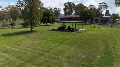 Situated in the peaceful village of Blandford, well away from the highway and only 20 minutes from Scone, this 1-acre (4,047 sqm) property offers a lovely rural lifestyle. The brick home has been rendered, and with triple-glazed windows and doors, it is very well insulated. There are three big bedrooms, two with built-in robes and the main with an ensuite and R/C air. The living area is open plan and features high vaulted ceilings with skylights, a combustion fire, and R/C air. The timber kitchen is in very good condition, with a 900mm gas cooktop, electric oven, and dishwasher.